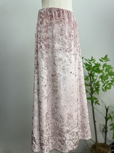 复古气质百搭金丝绒松紧半身裙秋冬显瘦中长款粉色小个子a字长裙