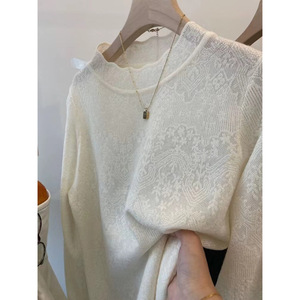 【双层蕾丝】气质暗纹花纹蕾丝花边领针织衫女内搭打底毛衣减龄