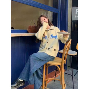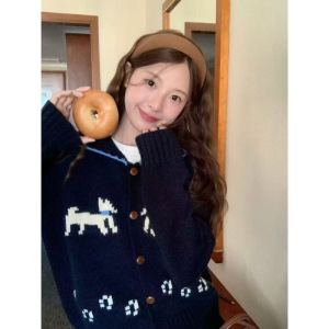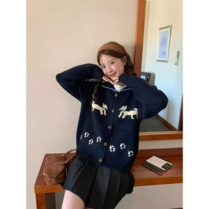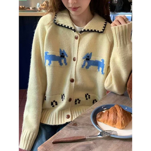 慵懒风小众高级感提花翻领毛衣外套女秋冬宽松软糯减龄针织上衣