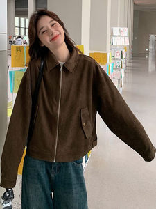 美拉德短款麂皮绒外套女春秋冬美式复古慵懒chic又酷又飒皮衣夹克