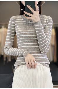 秋冬新款条纹针织衫女秋安迪绒洋气修身显瘦上衣内搭毛衣打底衫