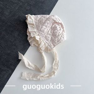婴儿帽子甜美碎花护耳帽 秋冬女宝宝保暖绑带防风套头帽