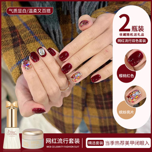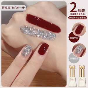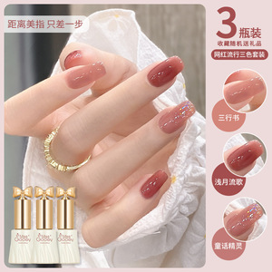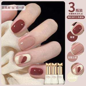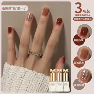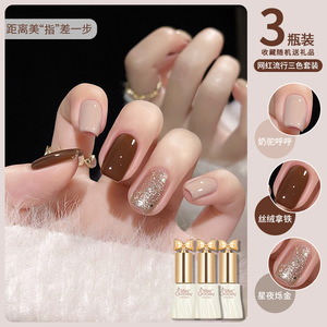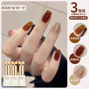 秋季焦糖奶茶指甲油胶2025年新款网红爆闪显白双色套装美甲店专用