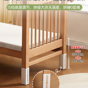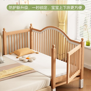 榉木婴儿拼接床儿童可升降高护栏实木床边加宽拼接床宝宝床平接床