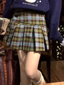 蓝绿格短裙 闪电当