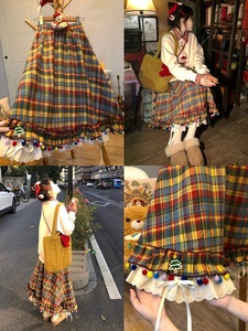 【ALITTLE 乱糟糟】圣诞小糖豆!复古节日感彩色格子百褶裙半身裙