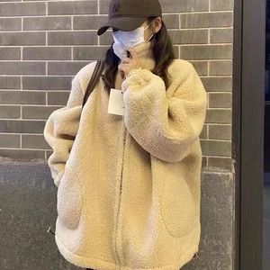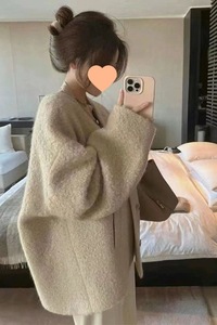 大码女装羊羔绒毛外套女秋冬季感外套加厚设计感小众上衣棕色