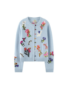2025早秋新款法式重工刺绣100纯羊绒开衫外套