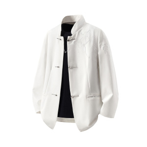 NASA白底高级感「折棘」荆棘立体绣2025秋季新款大码中式潮流西服