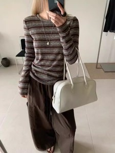 韩国东大门2025秋季新款简约百搭时尚条纹长袖T恤女打底衫上衣潮