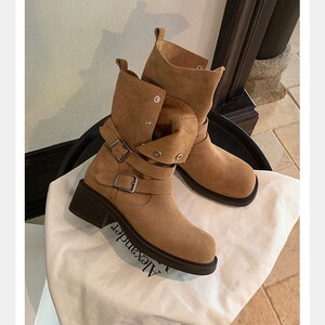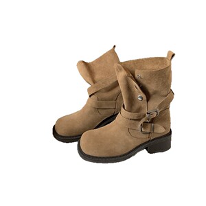 葡萄妈studiolee增高5.5cm~ 美拉德粗跟厚底扣带牛反绒短筒靴女秋
