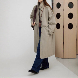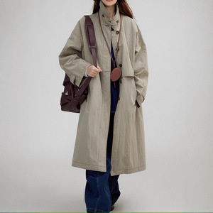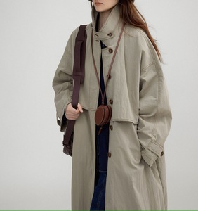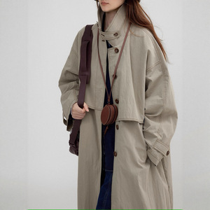 夏洛克手稿'复古vintage立领纸感水洗廓形长款秋风衣外套女