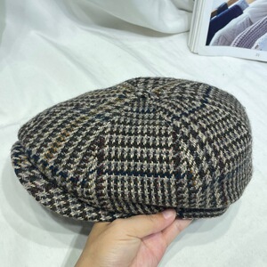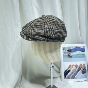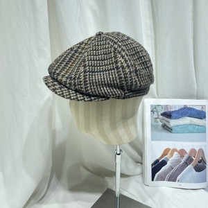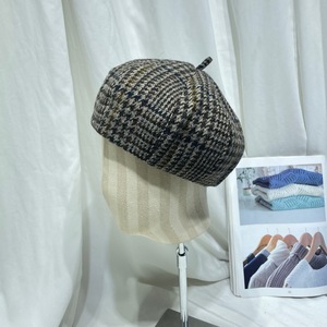 日系复古羊毛呢格纹贝雷帽女秋冬时尚文艺前进帽显脸小画家八角帽
