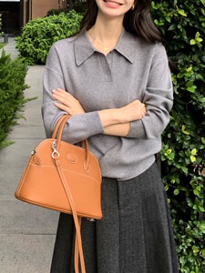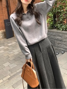 pusumd 慵懒基因 polo领套头毛衣女春秋宽松慵懒长袖针织衫上衣