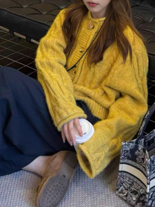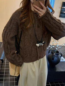 复古灰色麻花毛衣外套女2025秋冬新款慵懒风针织开衫高级感上衣厚