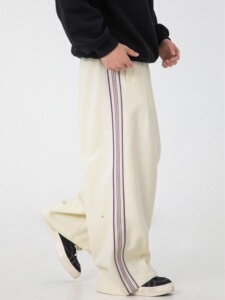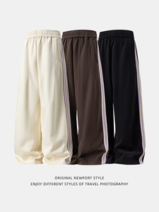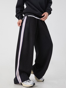 高街美式直筒休闲裤男秋冬款撞色织带潮牌卫裤复古宽松运动长裤子