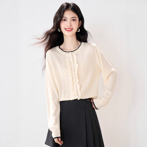 小香风宽松圆领毛衣针织开衫外套女2025新款秋冬装高级感长袖上衣