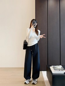 GA917万搭好穿!酷飒风运动休闲束脚直筒工装裤宽松阔腿弯刀裤女