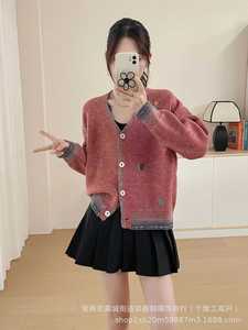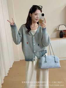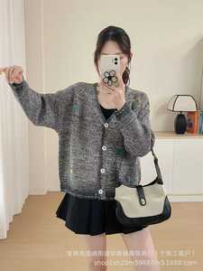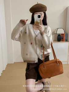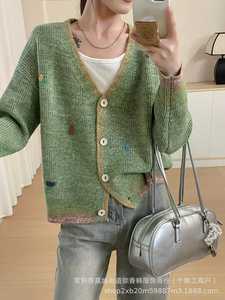 复古风立体刺绣2025年秋季新款拼色休闲宽松毛线针织开衫