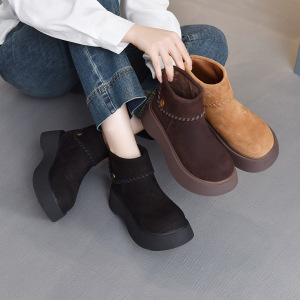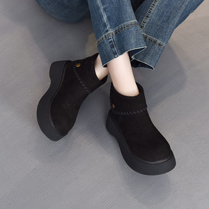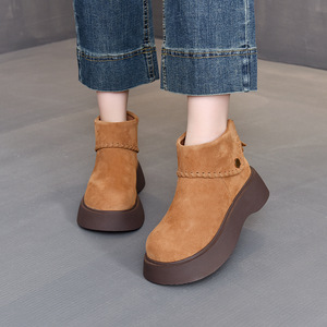 2025年秋季新款真皮复古马丁靴女百搭短筒勃肯烟筒靴潮