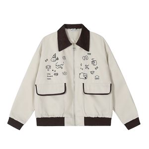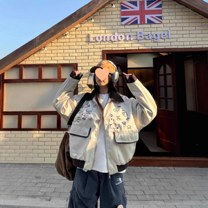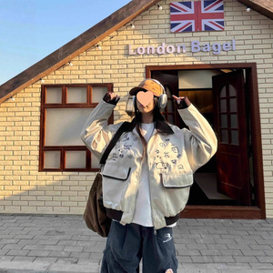美式翻领复古2025街头撞色刺绣新款工装夹克情侣春季宽松休闲外套