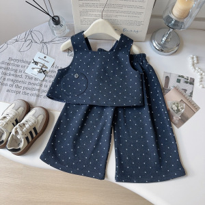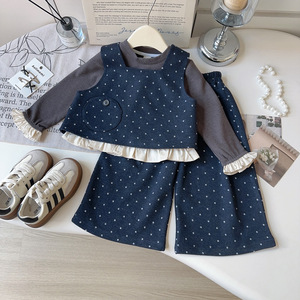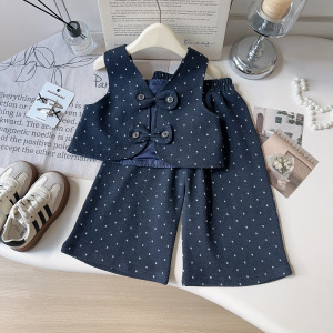 女童波点套装春秋季新款女宝宝洋气时尚·背心长裤两件套AQB086