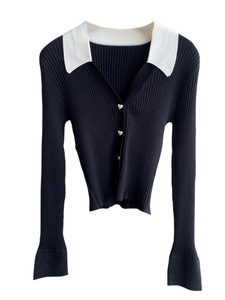 AMR UU◆别致时髦 撞色polo领羊毛混纺针织衫显瘦毛衣女秋冬新款