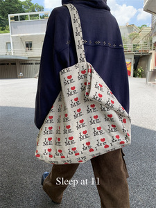 Sleep at 11 通勤减龄百搭字母爱心印花大容量轻便休闲手提单肩包