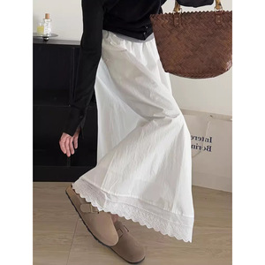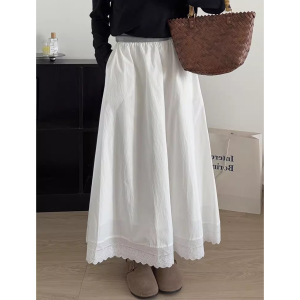 法式白色半身裙女2025春季宽松小众设计感蕾丝拼接松紧腰a字长裙1
