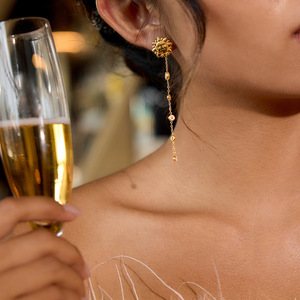 万兴欧美太阳锆石流苏不锈钢耳钉个性设计感轻奢风长款耳饰女
