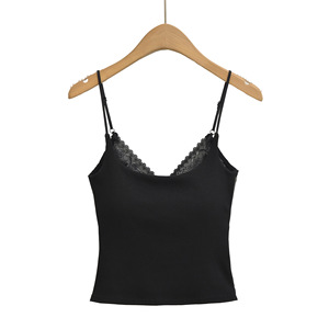 蕾丝假两件吊带背心女2025秋季新款胸垫一体外穿内搭修身打底上衣