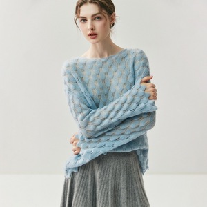 丝羊绒混纺衫女款圆领套头毛衣镂空羽毛设计感时髦洋气长袖内搭衫