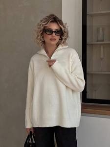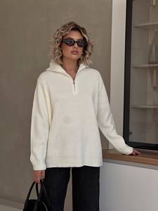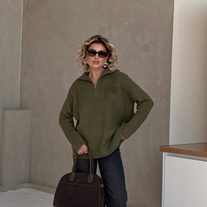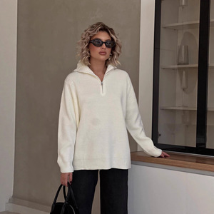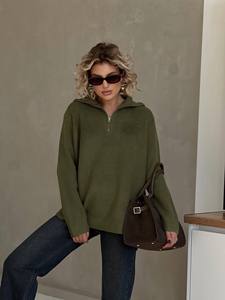 欧美跨境外贸纯色简约慵懒风垂坠感宽松休闲百搭高级半拉链毛衣女