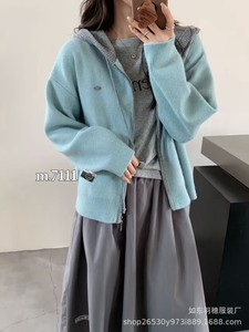 韩版假两件连帽毛衣开衫女2025秋冬款慵懒风软糯宽松针织外套L42