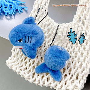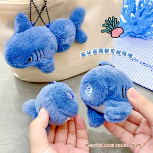 创意磁吸鲨头鲨尾毛绒公仔钥匙扣趣味对装CP情侣背包挂件鲨鱼玩偶