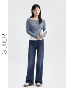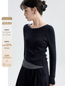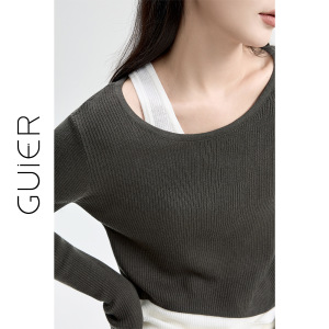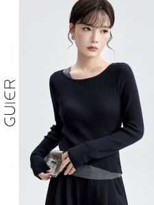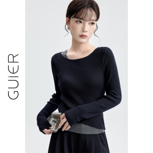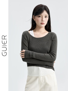 「GUIER」撞色假两件针织衫女2025新款秋季修身显瘦正肩高级上衣