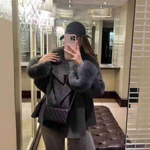 跨境欧美女装速卖通INS爆款秋冬时髦呢子百搭外套