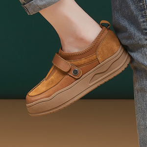 2025秋冬新款时尚厚底鞋女舒适低帮魔术贴休闲鞋百搭反绒真皮女鞋