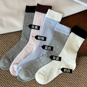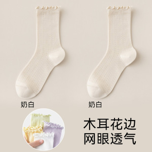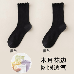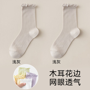 袜子女夏季超薄网眼堆堆袜镂空透气吸汗不起球韩系中筒百搭多巴胺