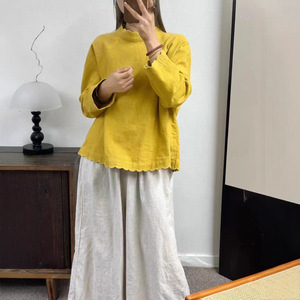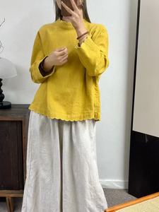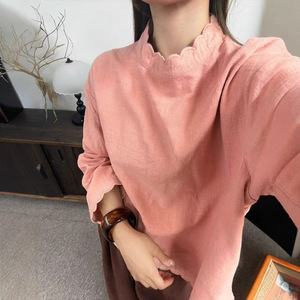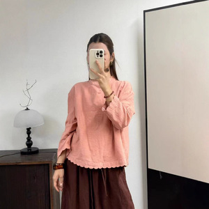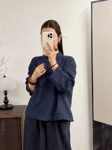 新品亚麻文艺风做旧花边休闲宽松百搭休闲女衬衫上衣