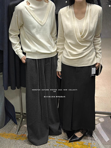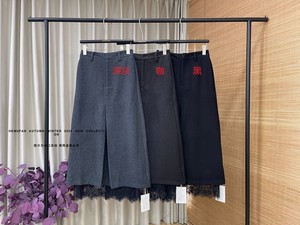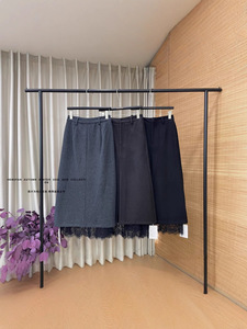 【WOW】蕾丝拼接下摆半身裙女装2025秋季气质高腰显瘦长款A字裙
