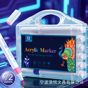 跨境热销丙烯马克笔可叠色24色美术绘画记号笔48色套装不透色软头