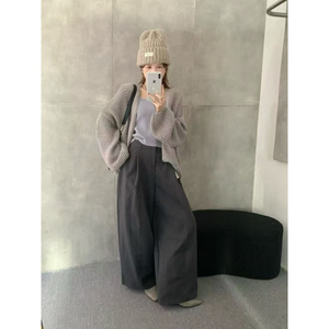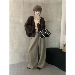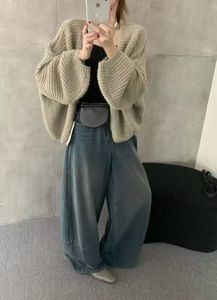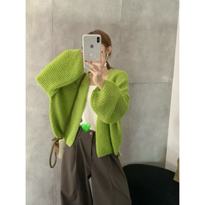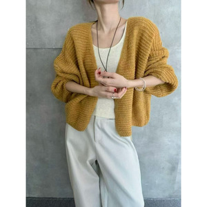 韩版2025年早秋十三行新款纯色灯笼袖针织慵懒风气质开衫外套女