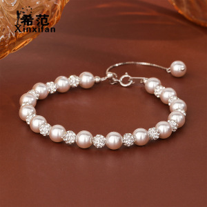 s925纯银曼塔玫瑰色珍珠手链串珠高级感小众新中式香巴拉水晶钻球