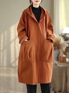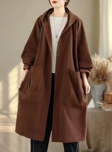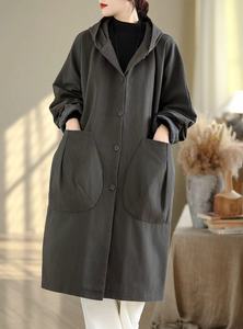 连帽风衣 2025秋冬季新款 过膝中长款休闲开衫大口袋外套女81652