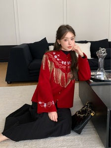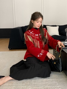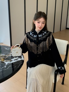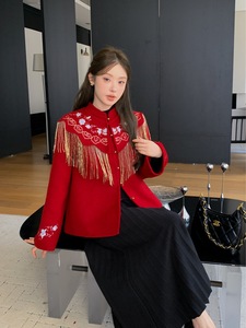 无艳双面羊绒大衣女【钗头凤】羊毛双面呢刺绣流苏云肩大衣一禾