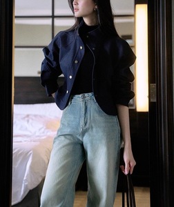Jicoutures原色牛仔收腰马术短外套女秋季复古立领单排扣通勤上衣