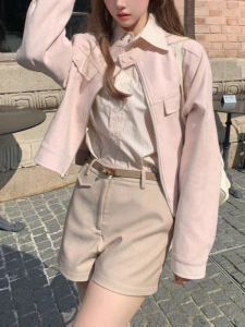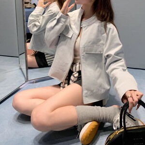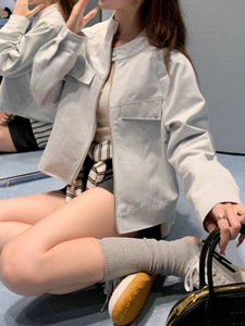 少女巴恩 复古圆领麂皮夹克外套女秋季韩系宽松休闲短款上衣