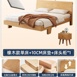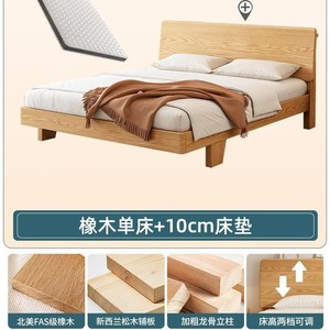 【橡木床】单床+10CM床垫【顺丰上楼入户】