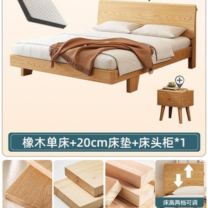 【橡木床】单床+20CM床垫+床头柜*1【顺丰上楼入户】